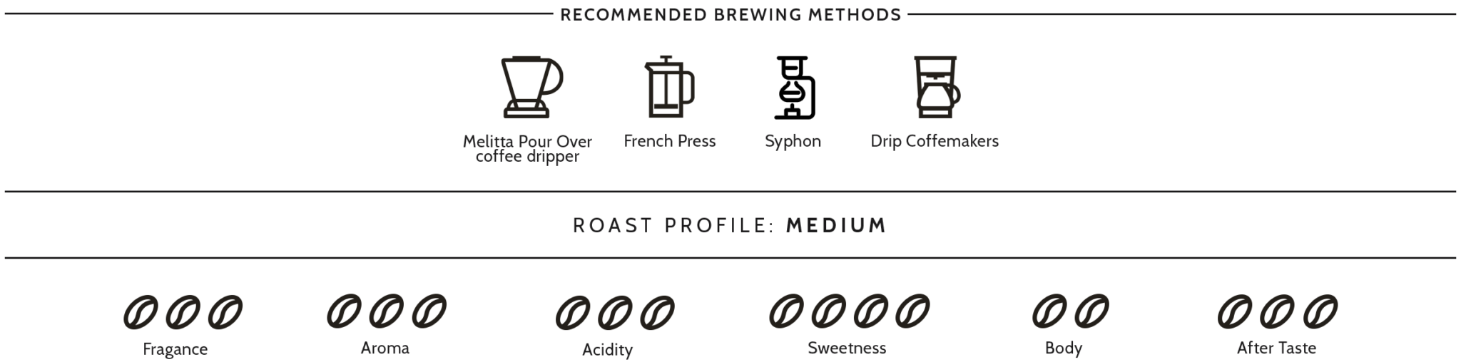 This single origin blend of varieties: Caturra, Gesha and Straube 15 (Typica deriavtive) from Finca Los Tarrales offers a truly charming cup. Manual methods really bring out this coffee’s exotic notes, try it in a pour-over in a Melitta or get a little creative with a siphon. You can enjoy it full-bodied from a french press or even keep it simple in your home drip brewer. This coffee is sure to please.